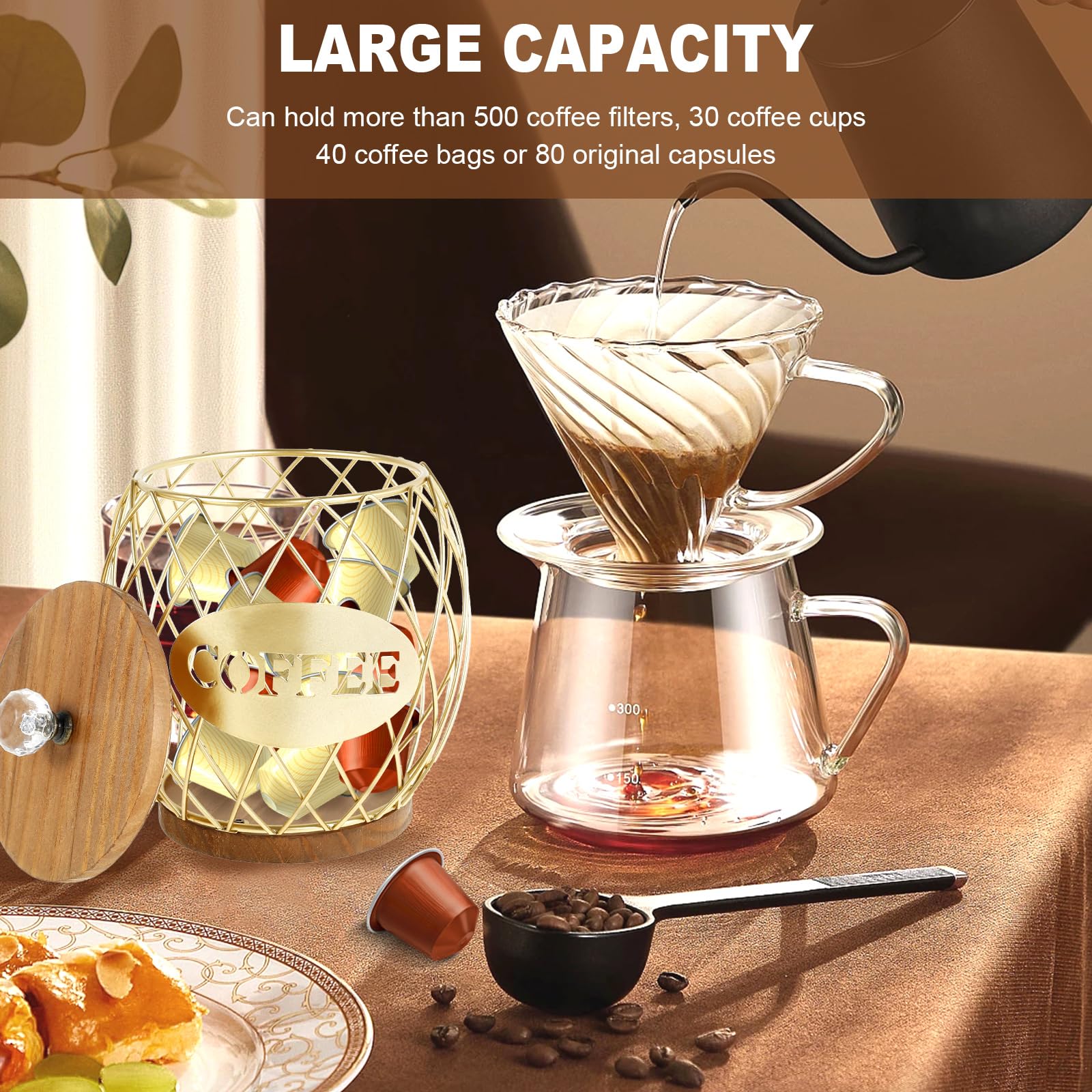 Brand: STUIPIULColor: goldenFeatures: Quality Texture: The coffee pod storage basket is made of premium iron and wood, sturdy and reliable,...