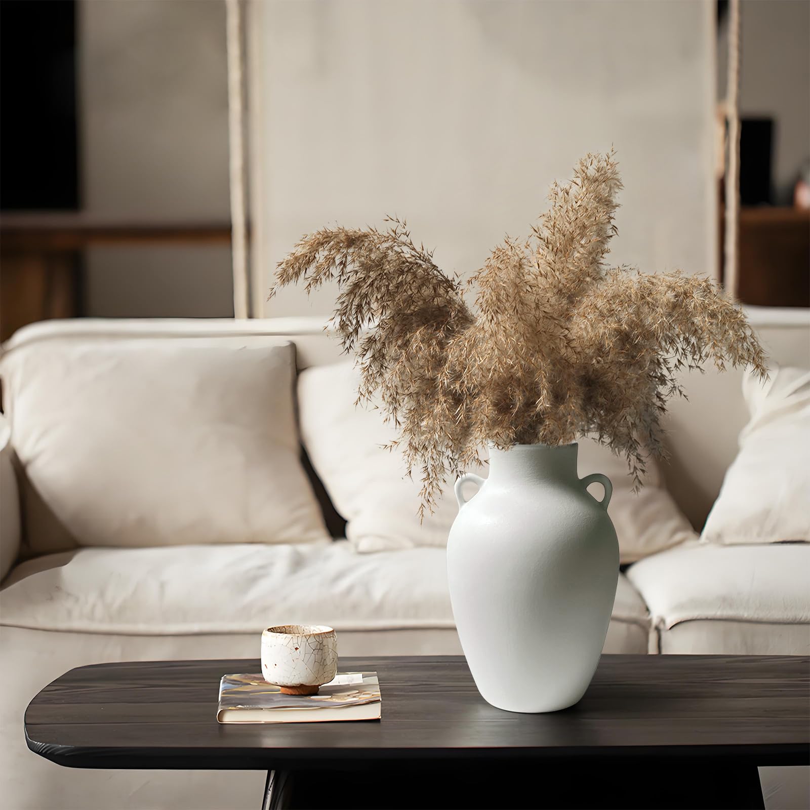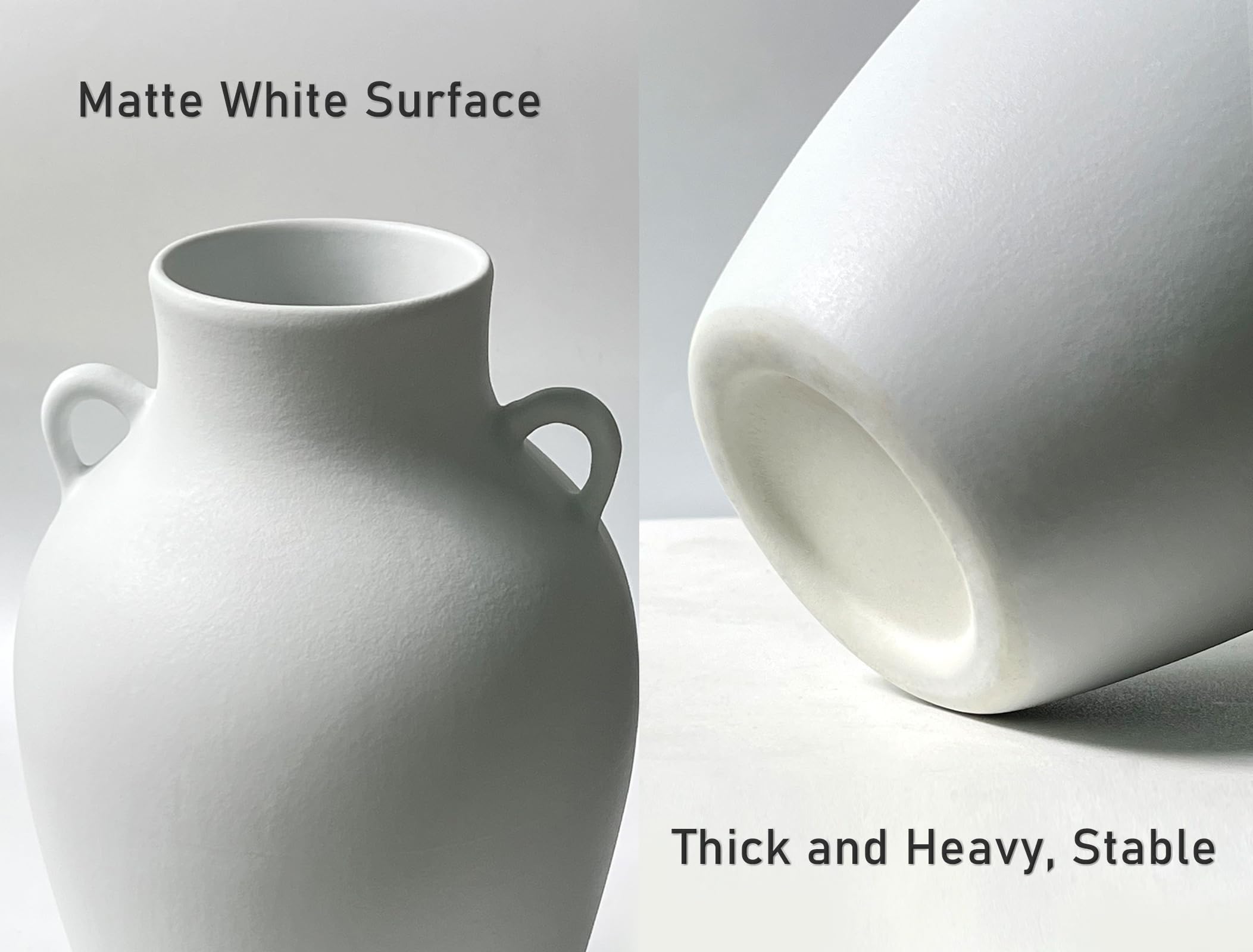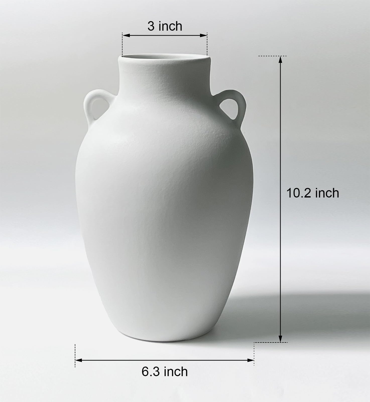 GeLive Matte White Ceramic Jar Vase with Dual Handles, Handmade 10 Inch Waterproof Rustic Farmhouse Pitcher Vase for Table Centerpiece, Flower Arrangement Home Decor