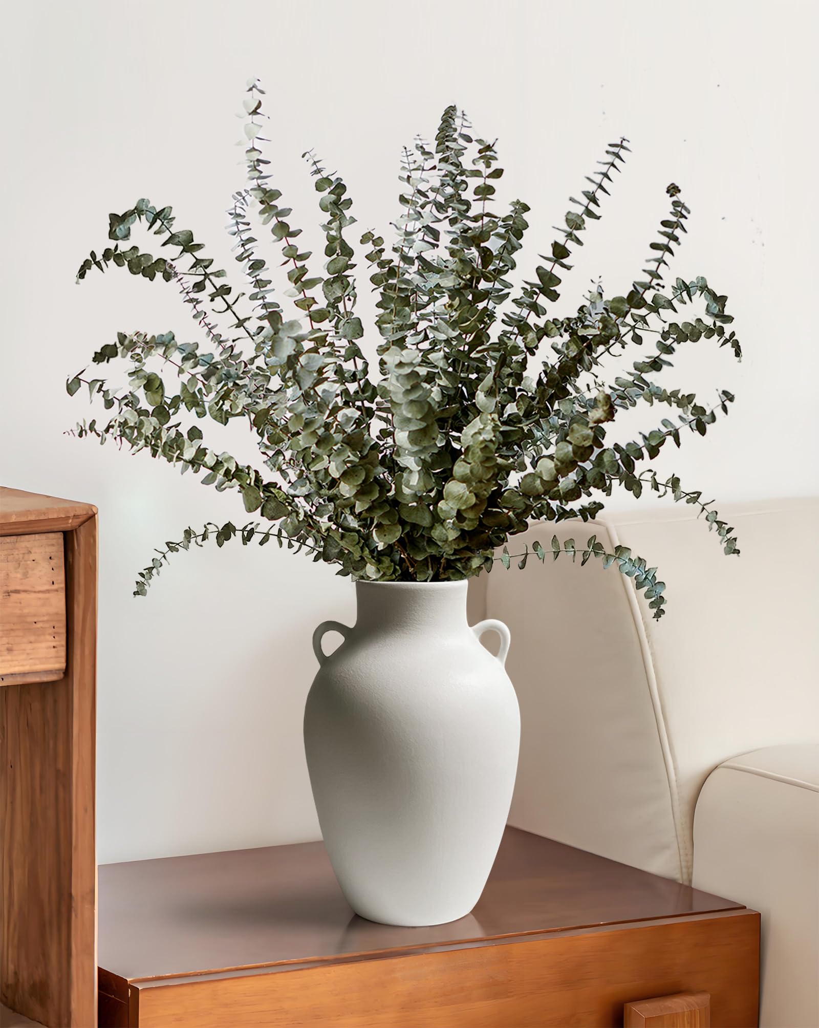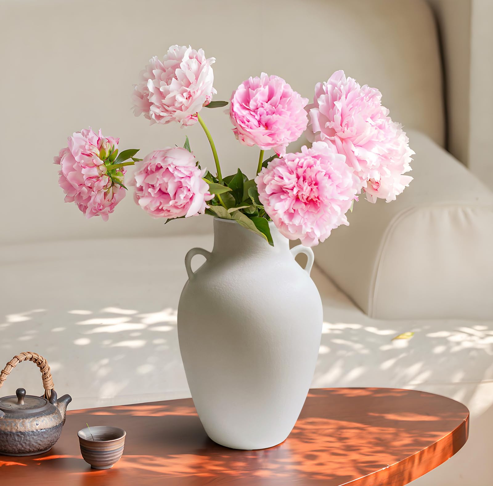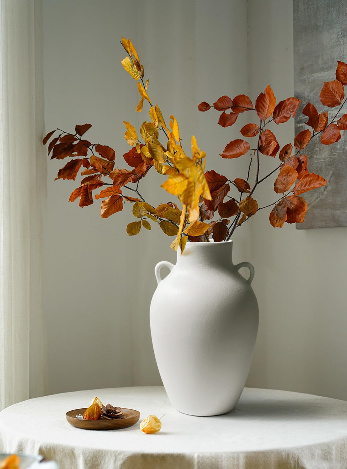 GeLive Matte White Ceramic Jar Vase with Dual Handles, Handmade 10 Inch Waterproof Rustic Farmhouse Pitcher Vase for Table Centerpiece, Flower Arrangement Home Decor