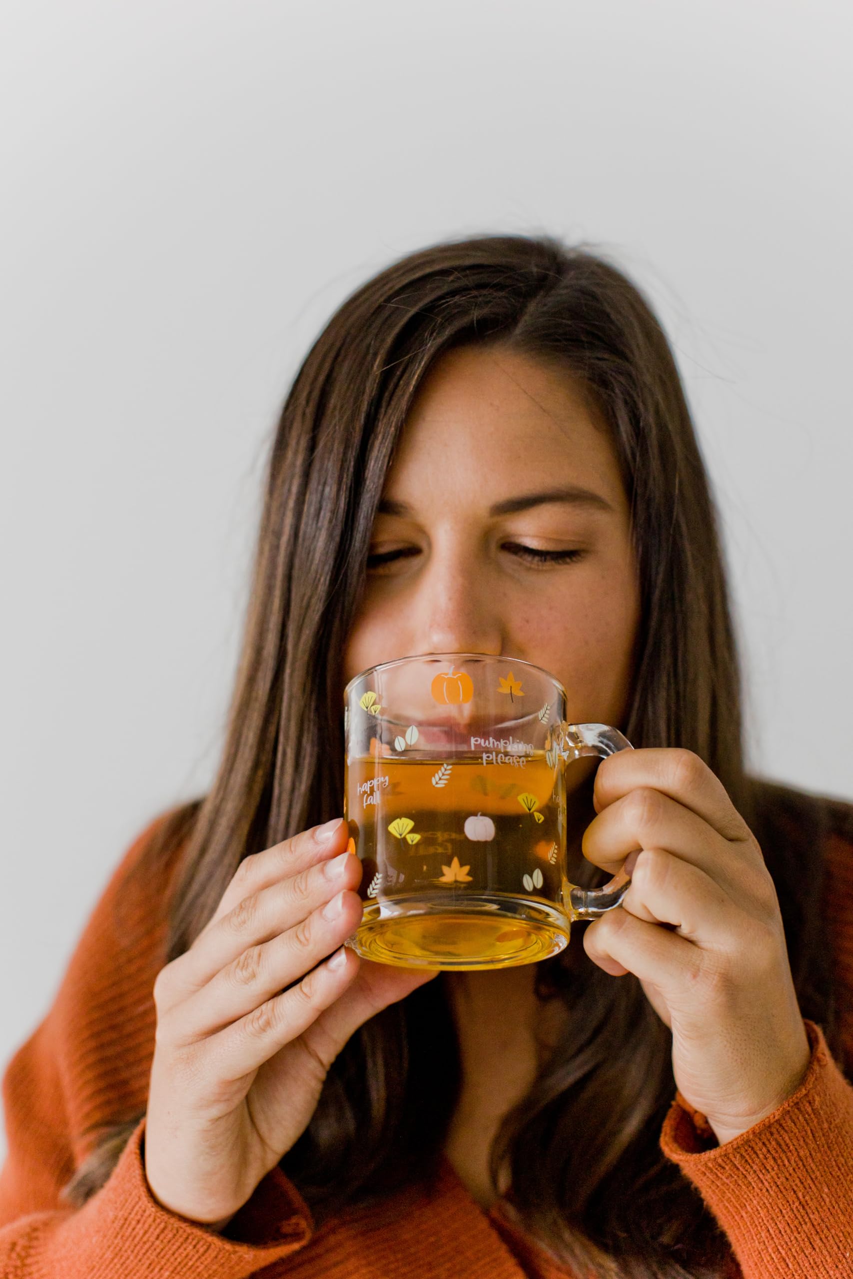 Pearhead Glass Harvest Mug, Halloween Home Décor, Coffee And Tea Glass Mug, Fall Drinkware Accessories, Seasonal Mug, 12 oz.