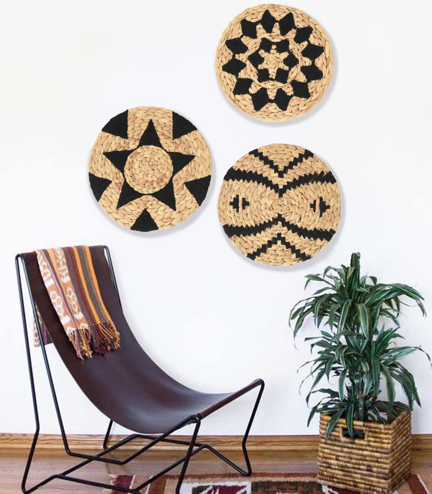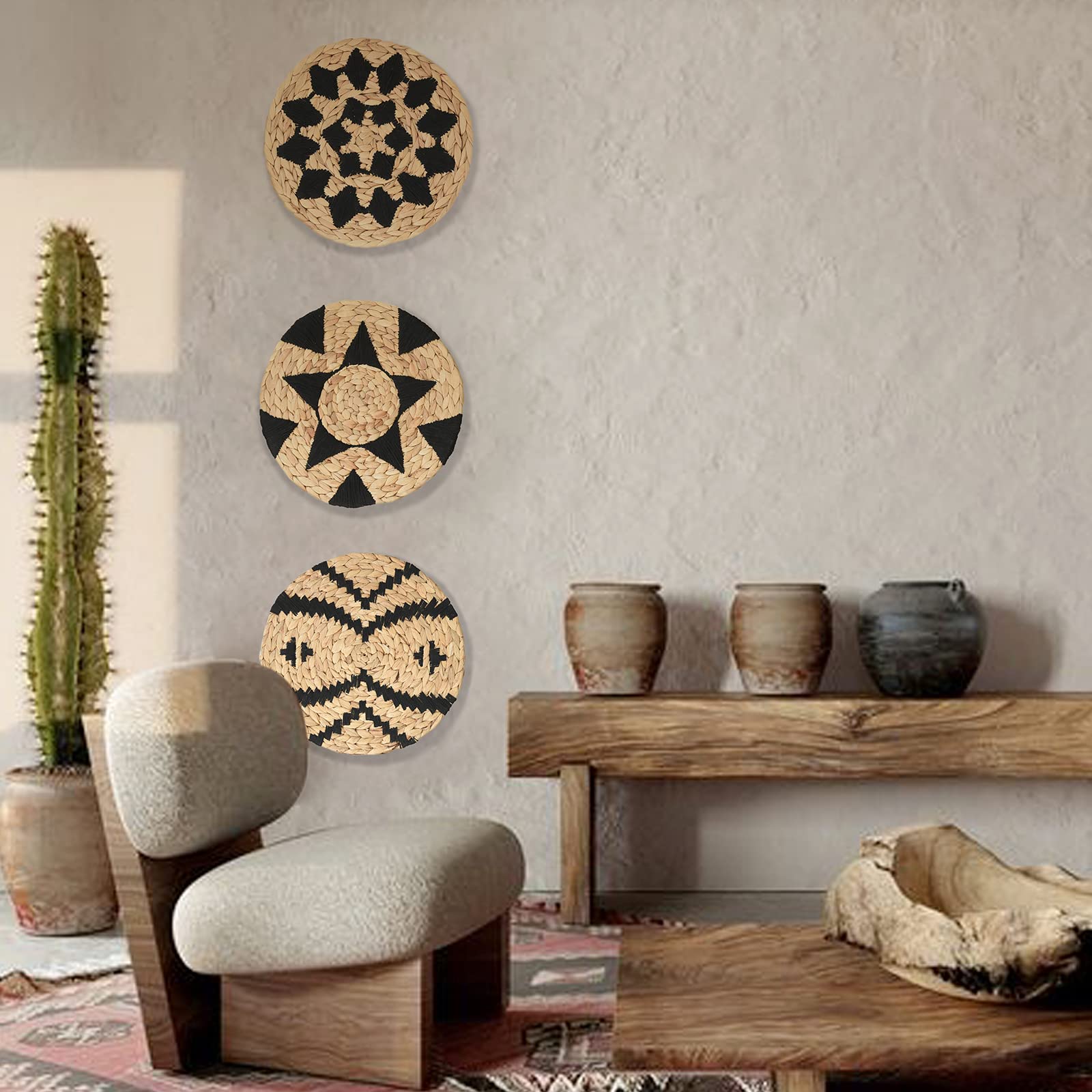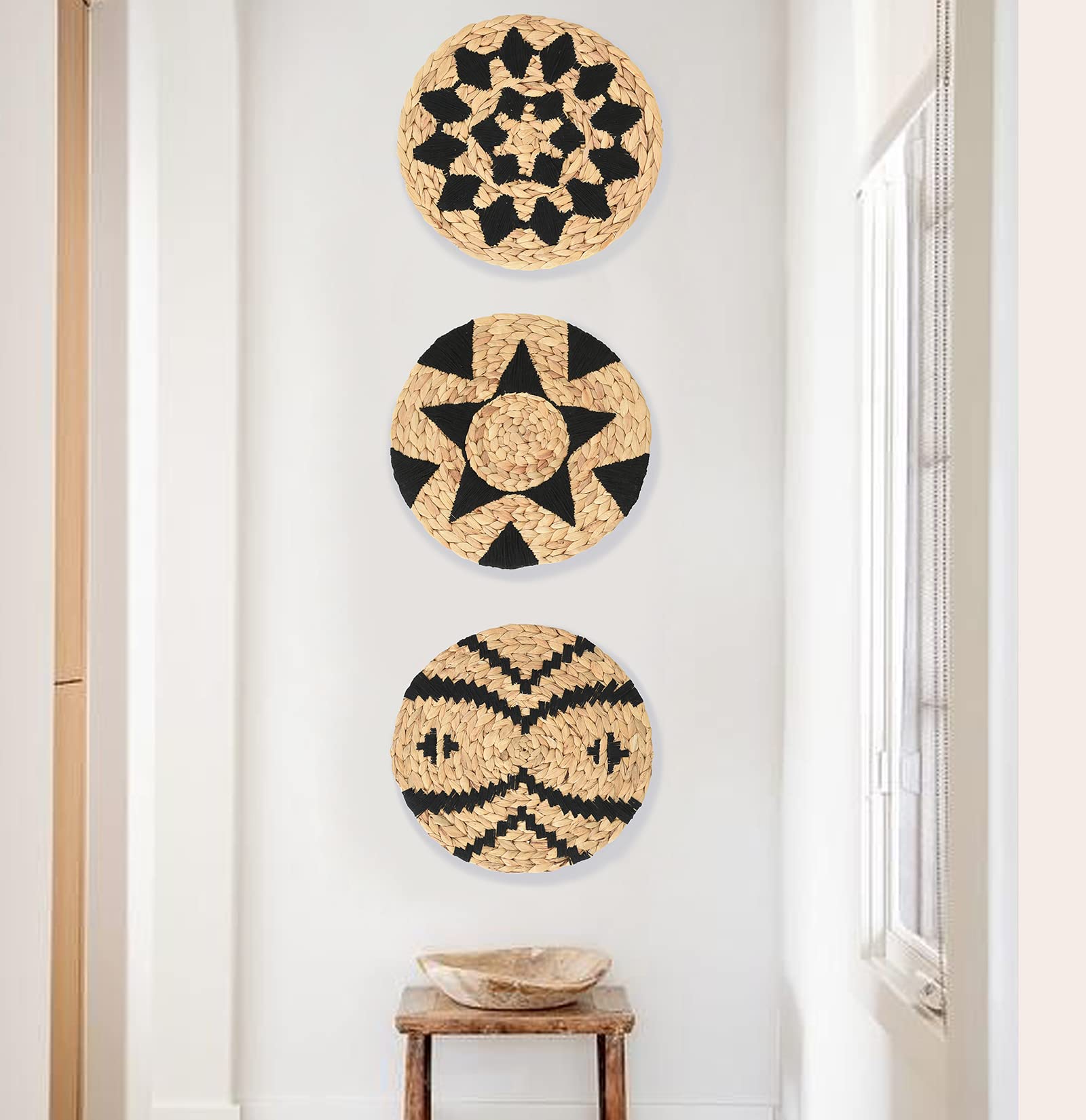 Wall Baskets Decor Black Wall Hanging Baskets Woven Boho Wall Decor Home Room Decor Macrame Wall Baskets (12"*3)